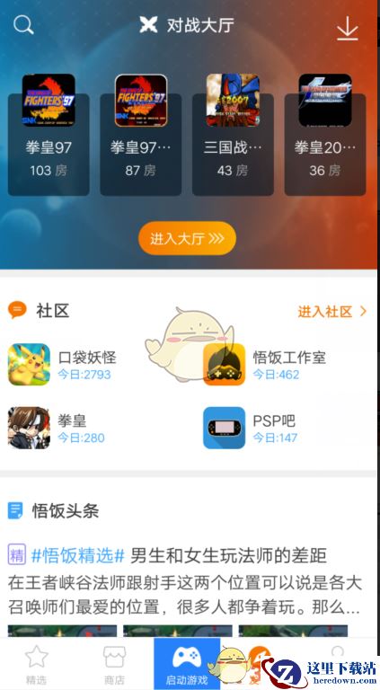 启动游戏右边第一个是“发现”,点击进入是对战大厅及悟饭头条,进入大厅可以找房间去对战