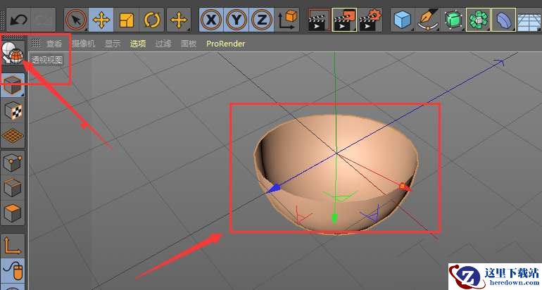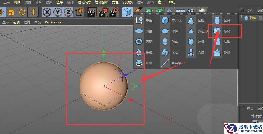 然后点击球体调出属性栏,在对象选项栏中打开类型,然后选择里面的半球体