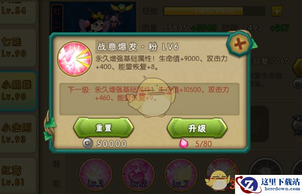 4、战意爆发•粉:永久增加属性,生命值、攻击力、能量恢复都会增加。