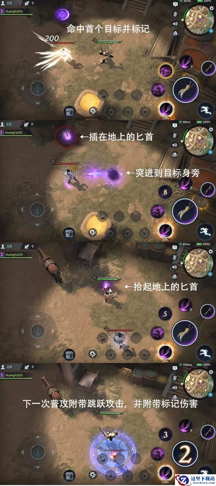 此外,新版武器技能还增加了各种五花八门的标记。以匕首的“飞刃”技为例,当使用者直线扔出飞刃,为首个命中的目标标记后,命中目标后的3秒内可以再次单击技能飞至目标身旁。同时,飞刃会抛物线弹至一旁插在地上,持续5秒,捡拾后的5秒内的下一次普攻,会自动搜寻4米内的最近敌人,跃至其身旁并发起强力进攻,同时为目标施加标记伤害。