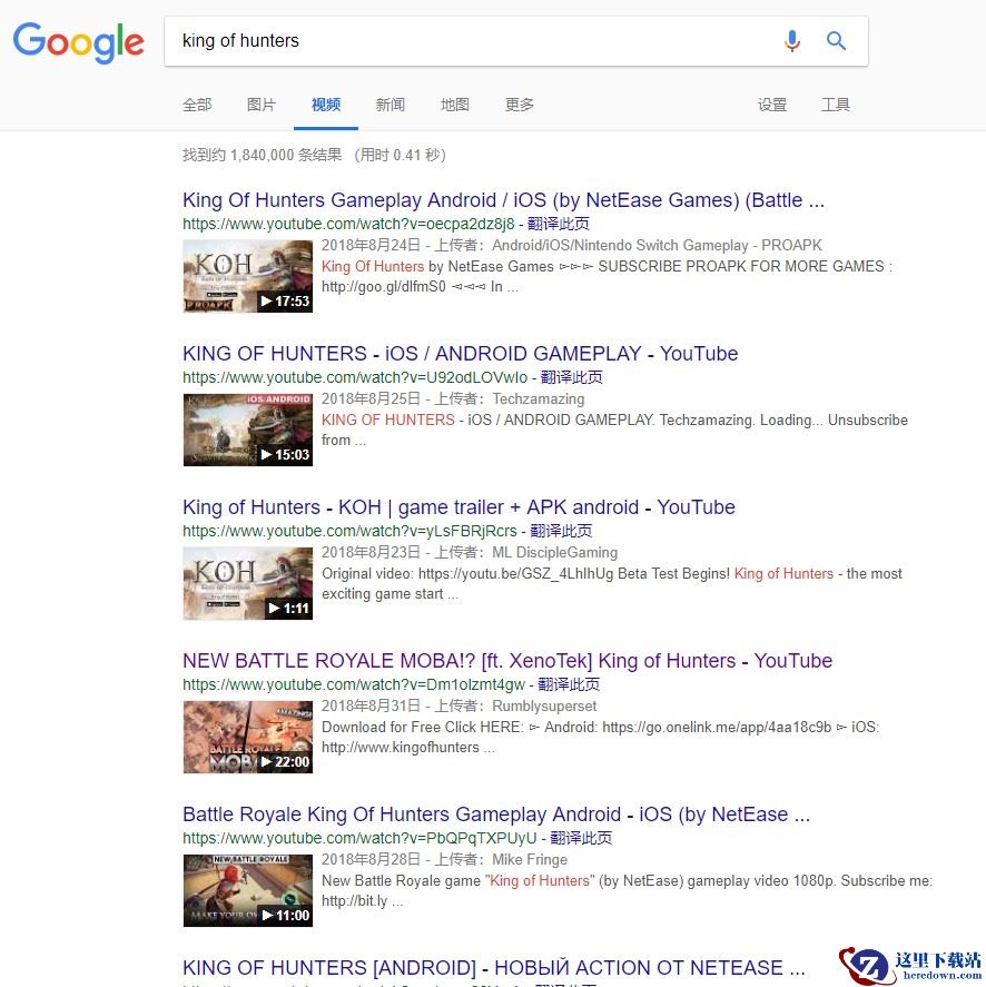伴随着游戏热度不断增加的,还有在视频网站不断涌现出的玩家试玩视频,在Google搜索中,《猎手之王》(King of Hunters)的视频搜索结果已超过180万条