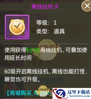 3、离线挂机时间:最多可储备20小时,当超过离线挂机时间后,离线挂机会停止