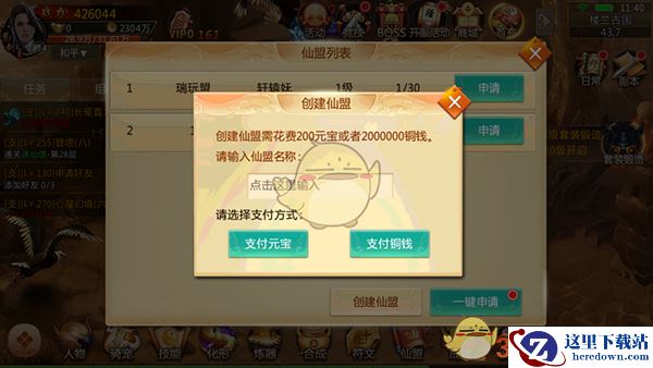 《青云诀》中,一直跟着主线任务走,44级时会解锁仙盟功能,创建仙盟需要消耗200元宝或者2000000铜钱,取一个霸气的名字(不要和现有仙盟同名哦),选择支付方式即可;加入仙盟则只需要在你喜欢的仙盟后面点击申请,然后等待盟主批准,就可以进入了。