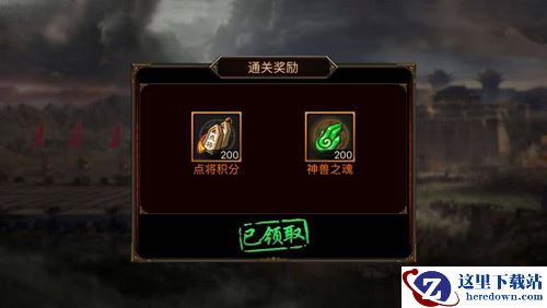 通关奖励包含神将的积分(可以用来兑换神将图需要的神将)、神兽之魂(可以兑换需要的神兽碎片)。