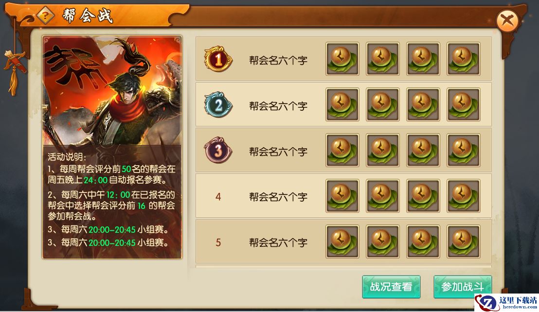 2、先进行小组赛,小组赛为组内循环赛,每个进入帮会战的帮会都能打三场