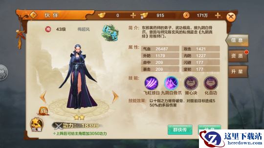 说到具体的玩法,其实在射雕中和绝大多数网游都差不多,传统的PVE以及传统的PVP,基本都能够一键搞定,但是高级的副本还是需要玩家亲自操作的,否则就会像笔者一样毙命在梅超风的剧毒之下(说好4W战斗力我们四个人加起来都十几万了挂机居然还打不过)。而其实除了这些以外游戏中还有两个特色,其一是游戏的PVP,游戏中的部分PVP玩法是采用固定的属性的,也就是说想赢全靠操作,当然这只是部分PVP,大部分情况下还是装备好的就是大佬。