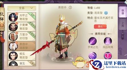 慕容冲作为法攻型伙伴,其特点是擅长法术减疗攻击。