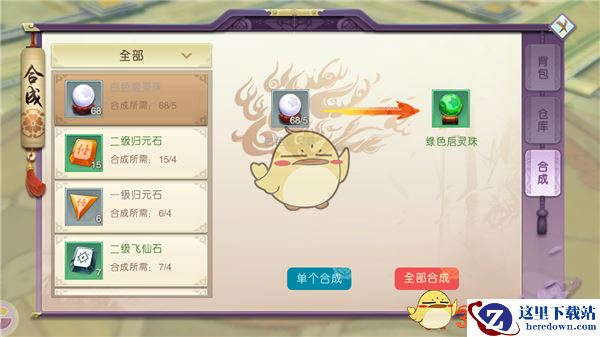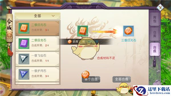 如果低级物品较多,还可以通过左上角的“全部”来进行筛选,筛选出低级宝石或者其他的低级物品,方便您合成想要的对应的高等级物品,更快的增强您的实力。