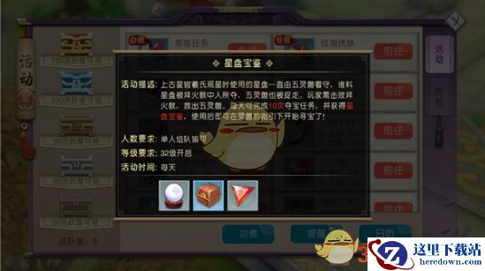 每位大人每天可完成10次夺宝任务,并获得星盘宝鉴,使用后即可在灵兽的指引下开始寻宝了!