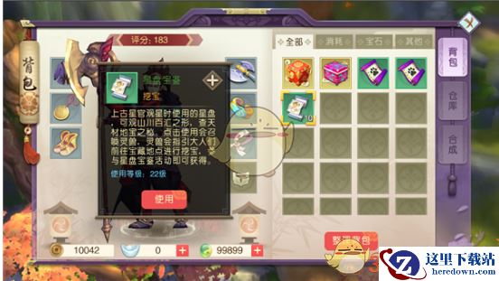 在包裹中使用星盘宝鉴,大人就可以跟随着宝鉴召唤出的灵兽,去寻找宝藏了,宝藏中可能会有宝石、杂物、金钱,还有可能会出现和大人争抢宝物的怪物,击败这些怪物,各位大人就可以获得宝物啦!