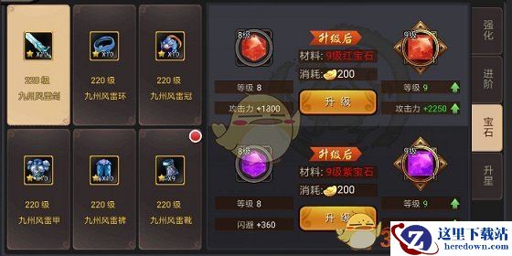 升级宝石可以带来属性的增强,每一颗宝石升级都必须有一颗更低级的宝石作为铺垫,比如想升级镶嵌一颗九级宝石,原先的装备上就必须已经镶嵌好一颗八级宝石。