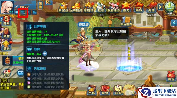 在所有的活动做完之后可以点击游戏上方的挂机,自动巡逻打野怪进行挂机,也可以获得不少的经验的,别忘了使用降妖令哦。在野外挂机还有可能遇到仙品神品伙伴,在3回合内击败他们,就能够获得了哦!