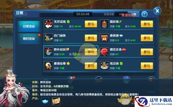 注意注意!小编在这里呼吁各大购物狂,没钱的时候,就来做封妖,钱多活少,还有经验可以升级,十分值得做的一个日常任务哦,兄弟们,快点来《问仙奇录》快乐的玩耍吧!