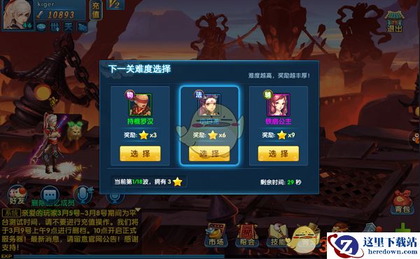 这里就需要一个窍门,只要摸对了门路,那么大家就可以尽可能地打到后面,实现通过无尽试练。有一个世界通用的道理,那就是第一关最简单。每一次战斗前,游戏可以让玩家从3个难度中选择其中一个进行挑战,而奖励的星数分别是3星、6星和9星。