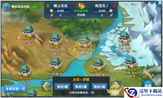 c、玩家可自行选择攻击哪个城堡和星级难度。