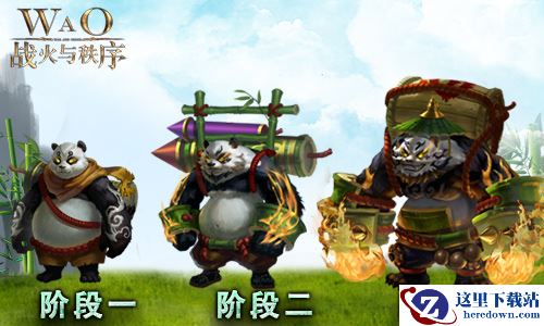 《战火与秩序》内的神兽都可通过培养升级。经验足够后,每升一级,属性就会提升一级。在满足一定条件后,大熊猫就可以进化啦!从身背一根大竹炮竹到全副武装,双拳中亦焕发出熊熊烈焰,威武逼人。
