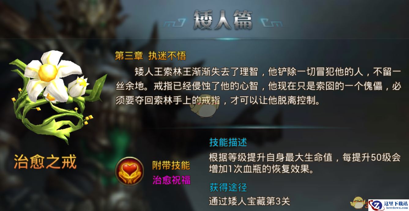 通过矮人宝藏第3关即可获得治愈之戒。