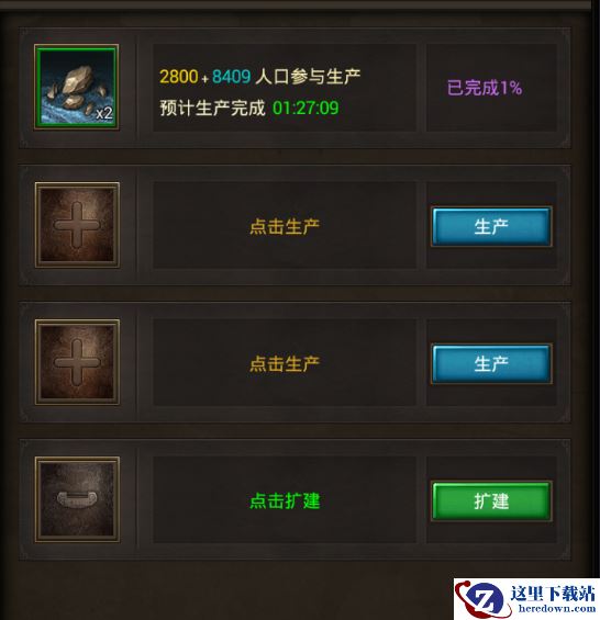 作坊开了之后建议直接开启第二条生产线——实话说,一条线生产绝对会出现铁匠铺长时间罢工的现象,一方面产量不足,另一方面种类不全。