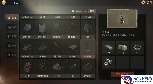 8、信号塔,恭喜你,你可以找到你的朋友了。互加好友拜访家园。也不用担心你的家园被偷。因为好友只能看不能拿。十级解锁,制作材料如下。