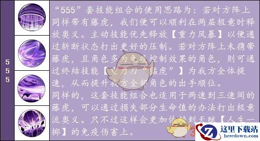 受到天赋【重力威压】的影响,藤虎的技能组合与他的自身特点不谋而合,一个“赌”字贯穿精髓,下面的两套技能组合几乎就是在赌对面是否也上阵了藤虎、对面阵容是否普遍免疫控制。