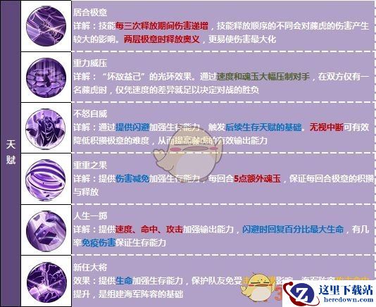 以高速作为基础的他,可根据对手的免控情况选择减速对手还是增速队友。首回合可选择以辅助为主,而后通过天赋免伤、闪避回复保证生存。次回合可依靠奥义携带的碾碎效果完成收割,结合重压再次提升自身残局的生存能力。