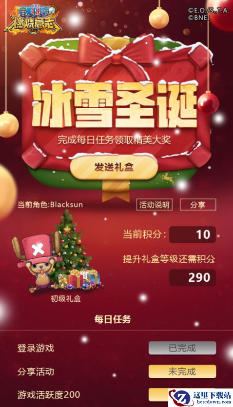 以上就是小编整理的关于《航海王:燃烧意志》冰雪圣诞活动介绍的全部内容,更多游戏攻略请持续关注手游网!
