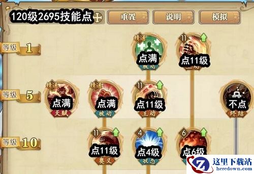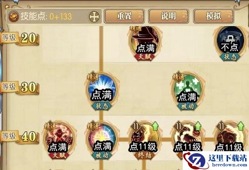 2、20级~40级这里,天赋和被动点满,变身后的三个技能,也全都点11级。