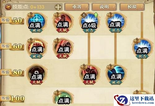 3、50~100级这里,变身后终结技【大猿王枪】的状态只能点到6级,理论上可以争取多点些,但相对的变身前的小技能状态就点不出来了,所以这边就只点6级了。