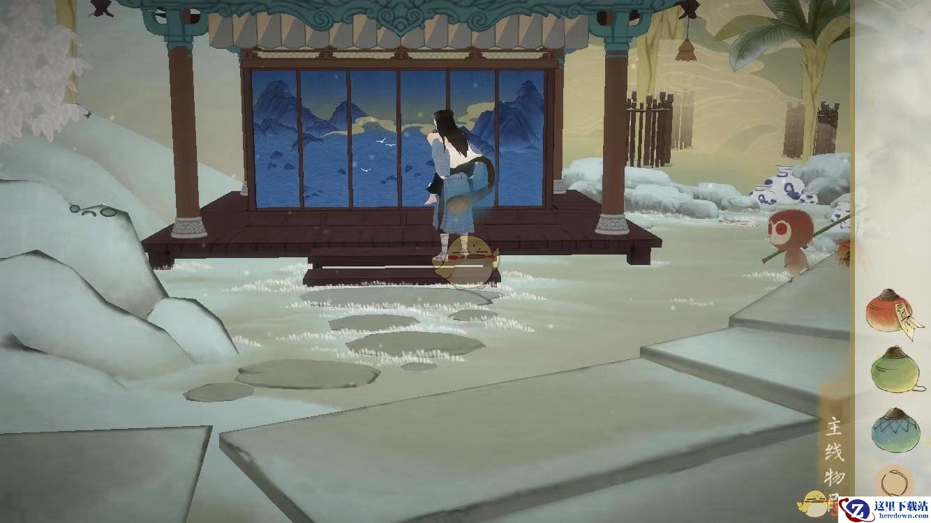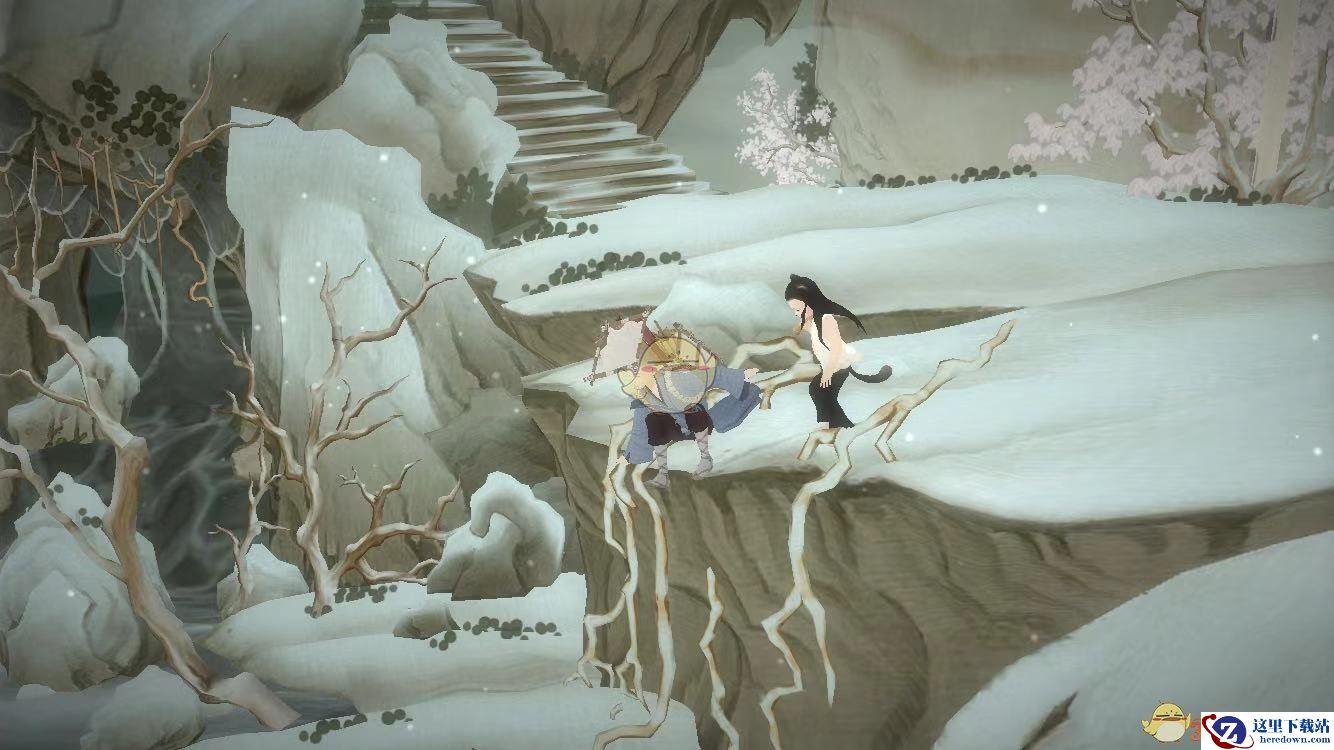 在这里墨言会掉进雪里,捏住尾巴就可以拔出来啦。