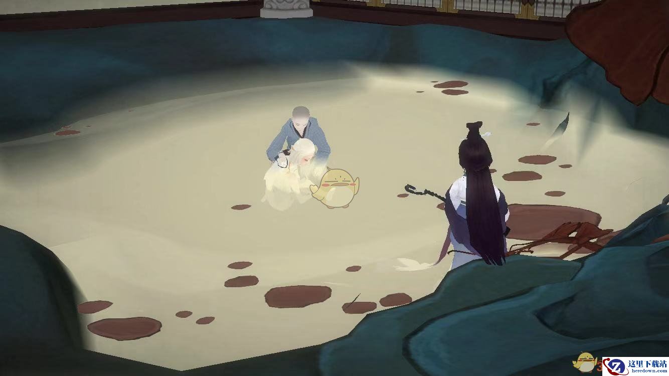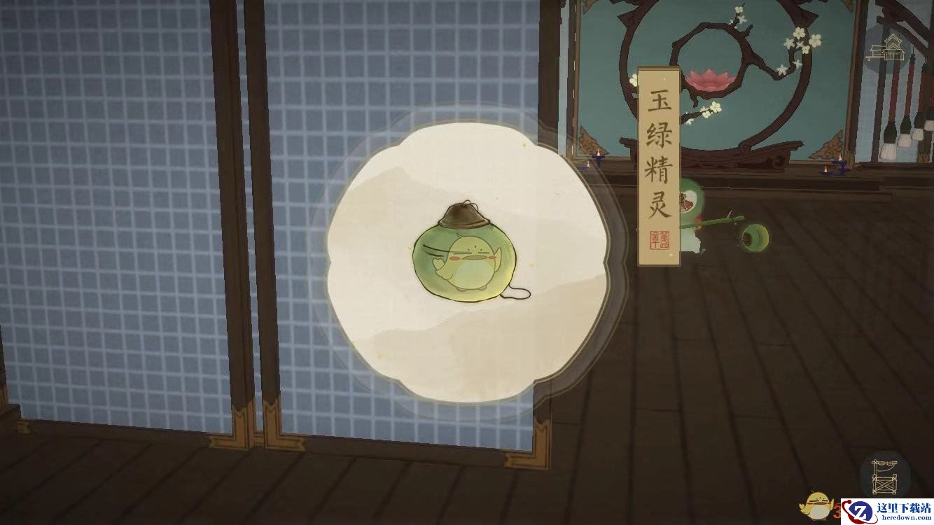走进画中可以看到一名女子,将几个精灵放在她身上。