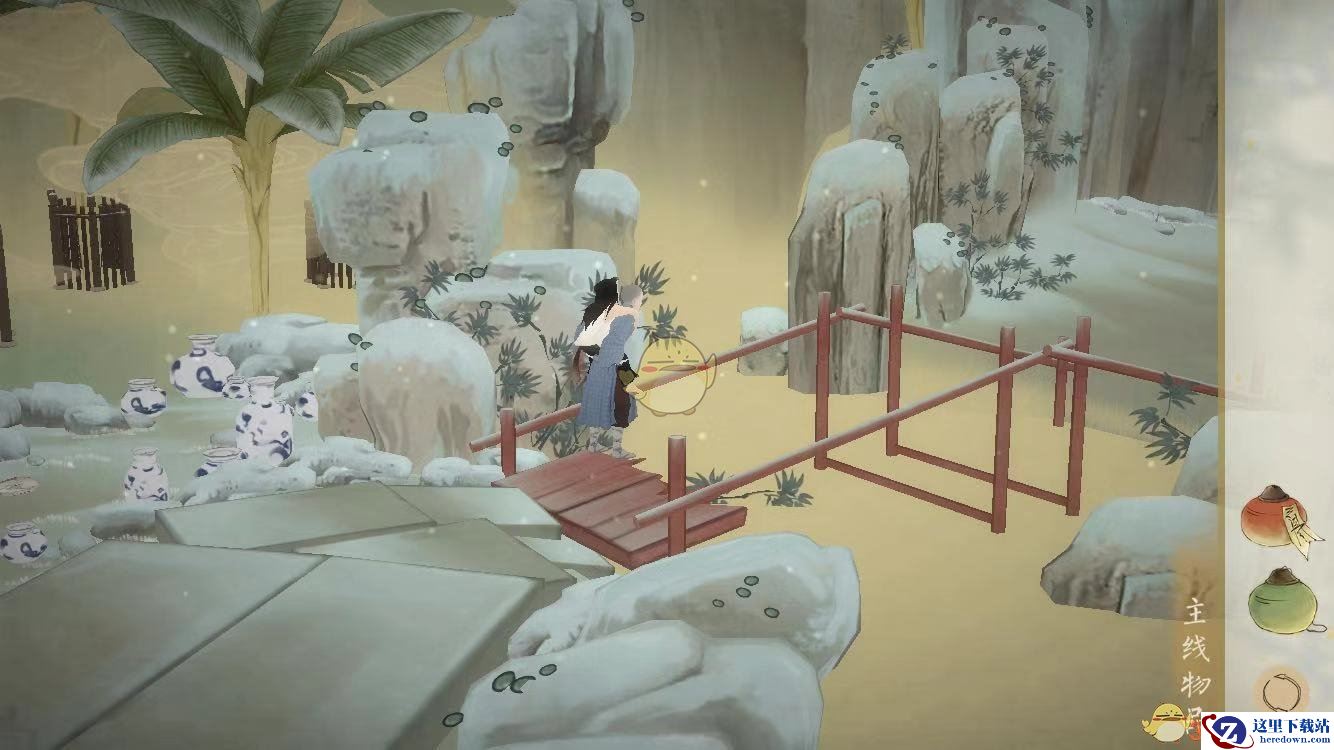 在这里遇到断桥过不去,把五蕴笔放在桥上就可以了。