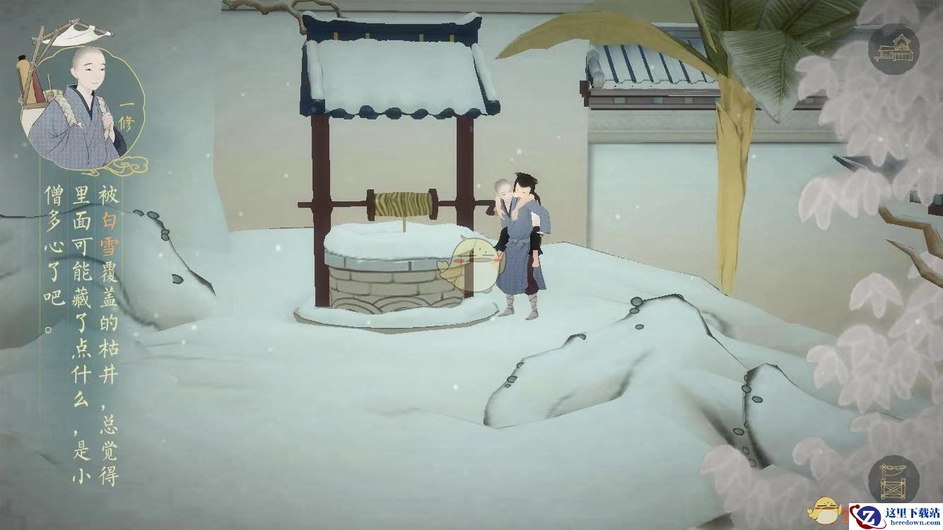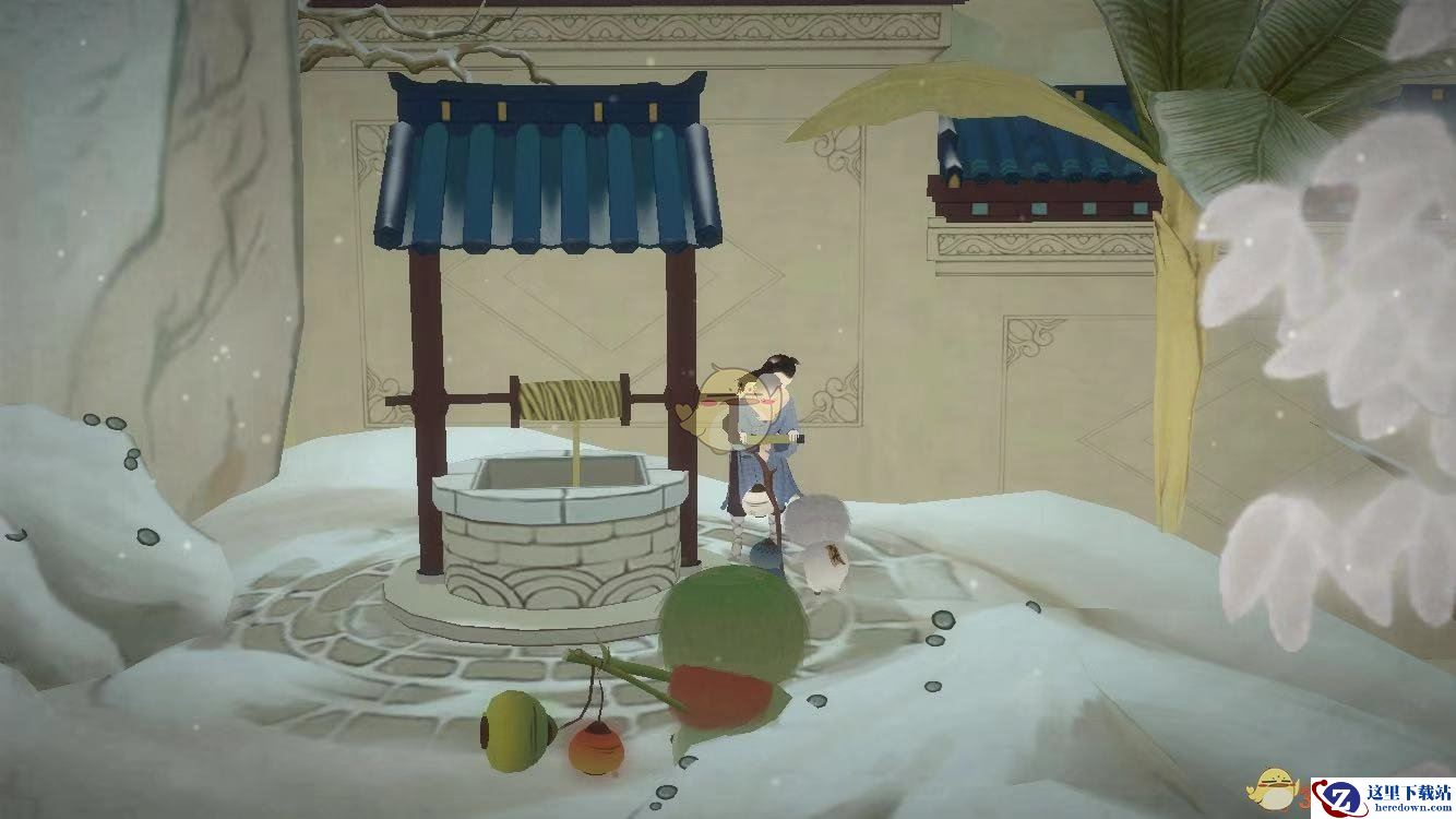 在这里会看到被雪盖住的枯井,用皎月精灵化雪。