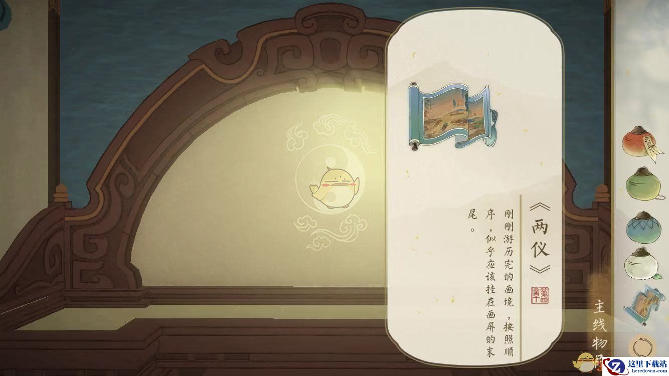 然后来到中间房子的那幅画那,转动画会看到比翼鸟的图案,将物品比翼放上去。
