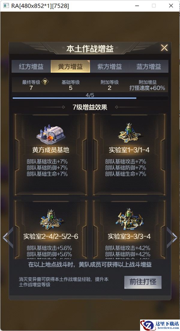 在“盟军实验室”,玩家可以研究科技、释放技能,为国家内所有指挥官提供强大的增益加成。