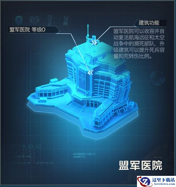 “盟军医院”能收容国内指挥官在远征和未来太空战争期间产生的死亡部队,通过先进的医疗设备自动将其复活,可使用专属的复活加速道具以减少复活时间。