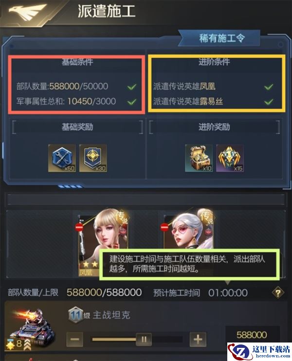 五、任务时间与派出的士兵数量相关,数量越多时间越短。同时任务会有基础要求和进阶要求,满足进阶要求可获得额外奖励。
