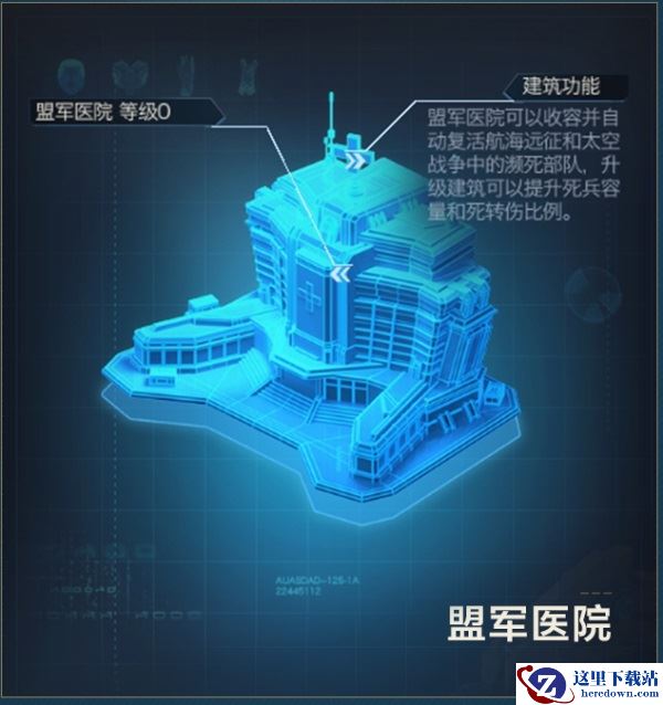 盟军医院:可以收容国内指挥官在远征和未来太空战争期间产生的死亡部队,通过先进的医疗设备自动将其复活,可使用专属的复活加速道具以减少复活时间。