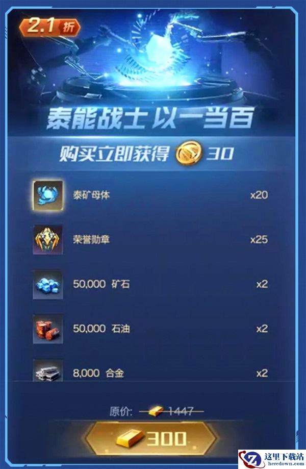 指挥官们可以根据自己的实际情况,在商城内以超低折扣购买【泰能战士大礼包】,开启即可获得海量泰能母矿、丰厚资源以及荣誉勋章等心动奖励。