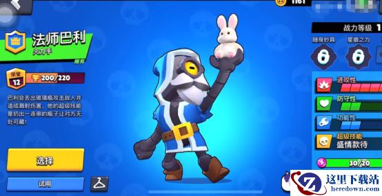 第二位赠送的英雄是稀有级英雄巴利,作为火力手,巴利有着超长的攻击距离以及超大的火力范围,并且还有抛物线攻击轨道,可以越过障碍物对目标造成伤害,骚扰和输出都不在话下。连同巴利一同赠送的皮肤是法师巴利,这是和Supercell自家游戏《皇室战争》的联动皮肤,国际服需要绑定Supercell ID获得,而国服则一直没有上线。换上皮肤后巴利化身为《皇室战争》中法师的样子,攻击时会有专属的音效,而移动时巴利还会举起无处安放的小手,憨态可掬。