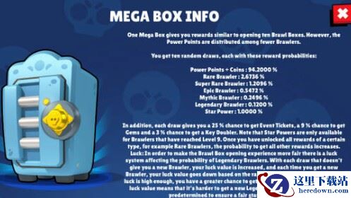 为了使Brawl Box的开箱感受更为公平,我们使用了运气系统影响着开出传奇英雄的概率,每当你开一个箱子没有开出新英雄的时候,你的运气值会上升,每当你开出一个新英雄的时候,你的运气值会基于你开出来的英雄下降一定的数值,但你的运气值达到一定的高度的时候,你会更容易得到一个传奇英雄,反之,当你的运气值很低的时候,就很难开出一个新的传奇英雄了。