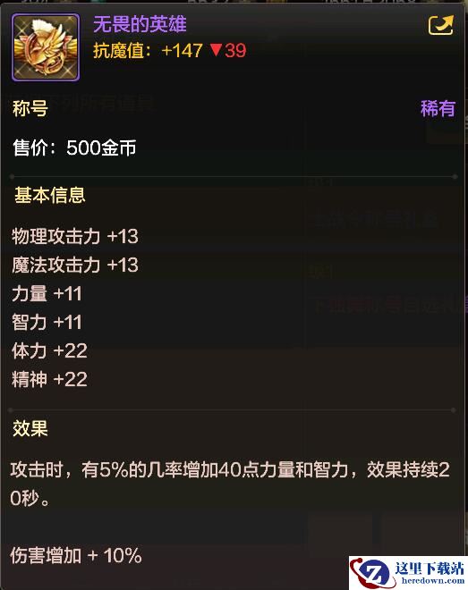这个称号虽然加成的力量和智力不多,但是它的效果额外增加10%的伤害