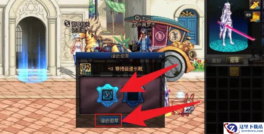4、在里面放上徽章后点击镶嵌徽章就搞定了。