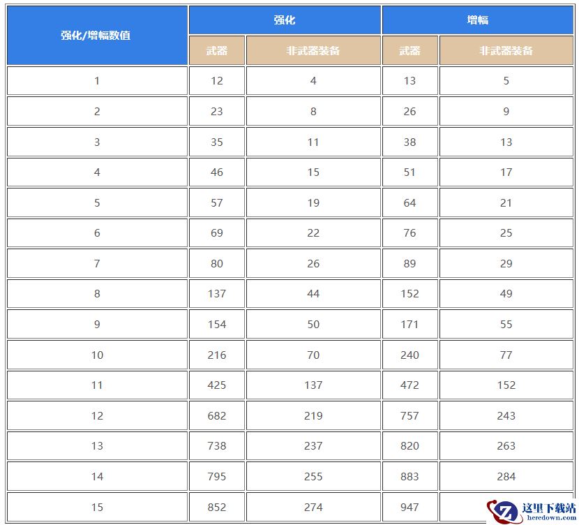 1、表格数据查看强化等级对应的名望加成,强化等级越高名望提升越高;