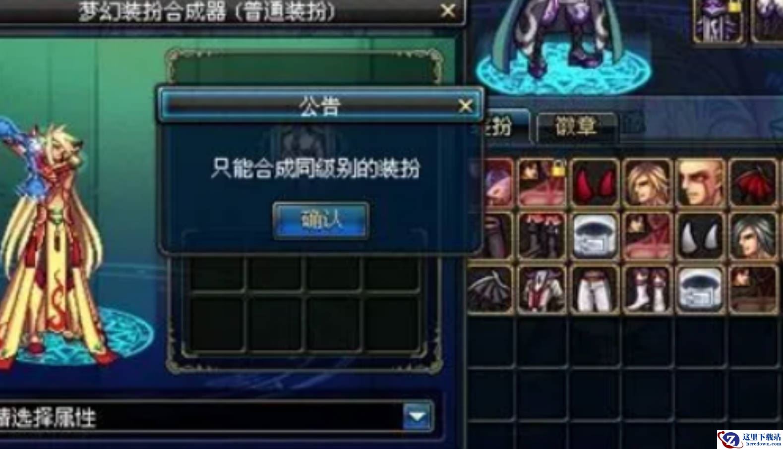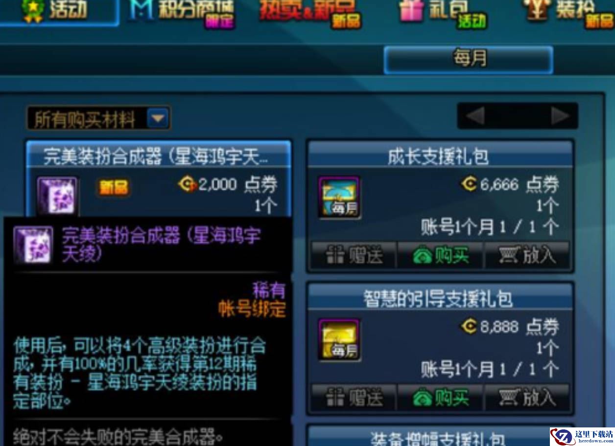 1、购买一套本职业的装扮合成器。
