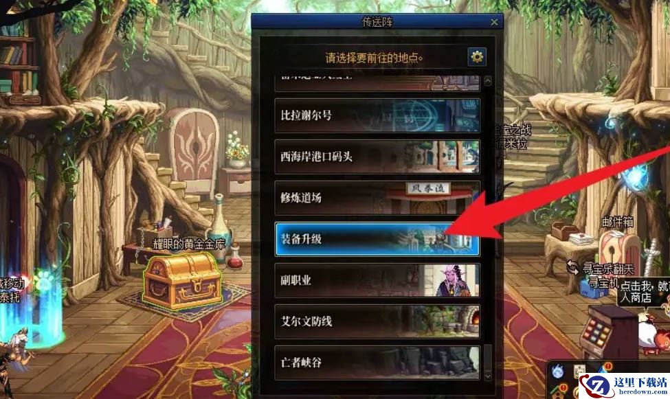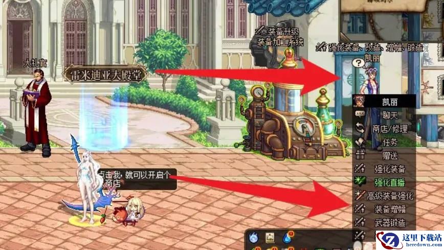 2、抵达后可以在右边看到一个叫做凯丽的npc,与之对话后选择装备升级。