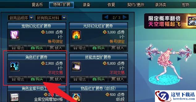 3、如下图所示我们就可以找到角色栏扩展券了。