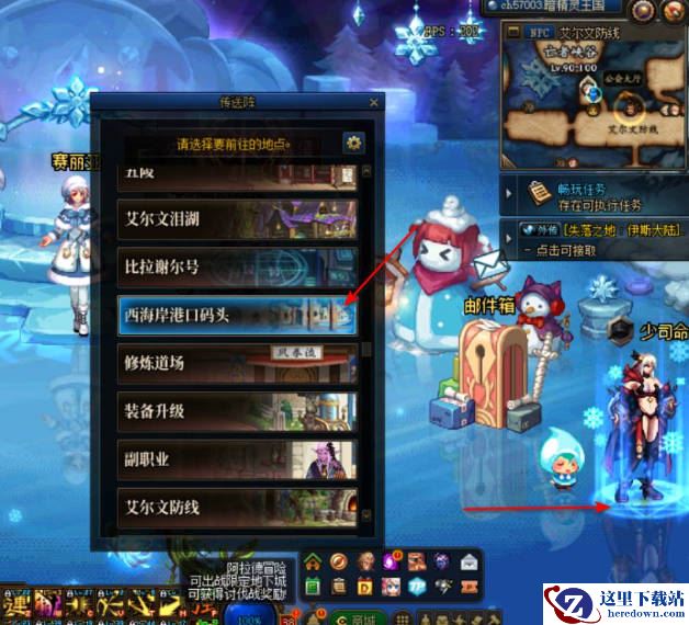 1、首先来到赛利亚旅馆有关的传送门,传送到西海岸码头。