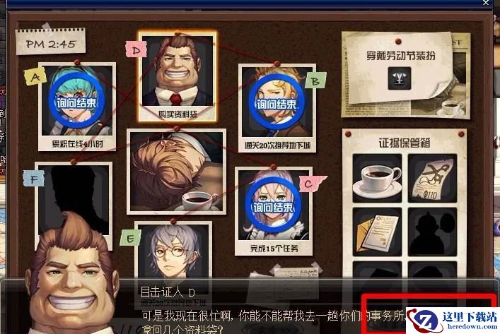 1、如下图所示,可以看到要求我们从助理侦探那里拿回几个资料袋。