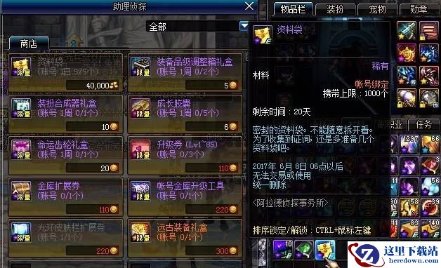 6、如下图所示就是资料袋了,注意道具是由时间限制的,时间为20天。