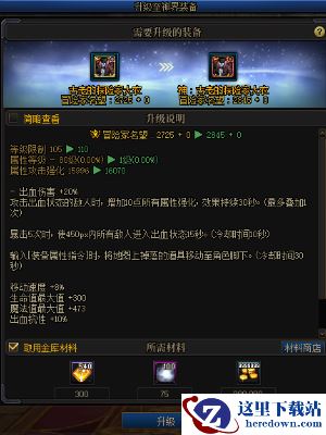 注:升级后的装备名称会增加“神:”前缀。升级后的神界装备可以继续喂养,以提升词条等级,每次喂养都会增加攻击强化、增益量与冒险家名望,直至40级。
